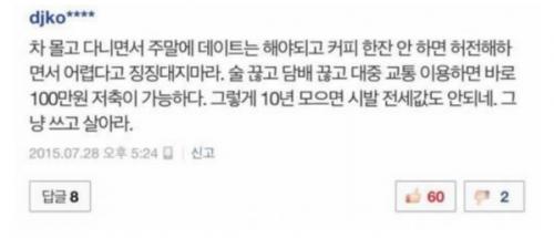 요즘 젊은이들 돈쓸건 다 쓰면서 말이야