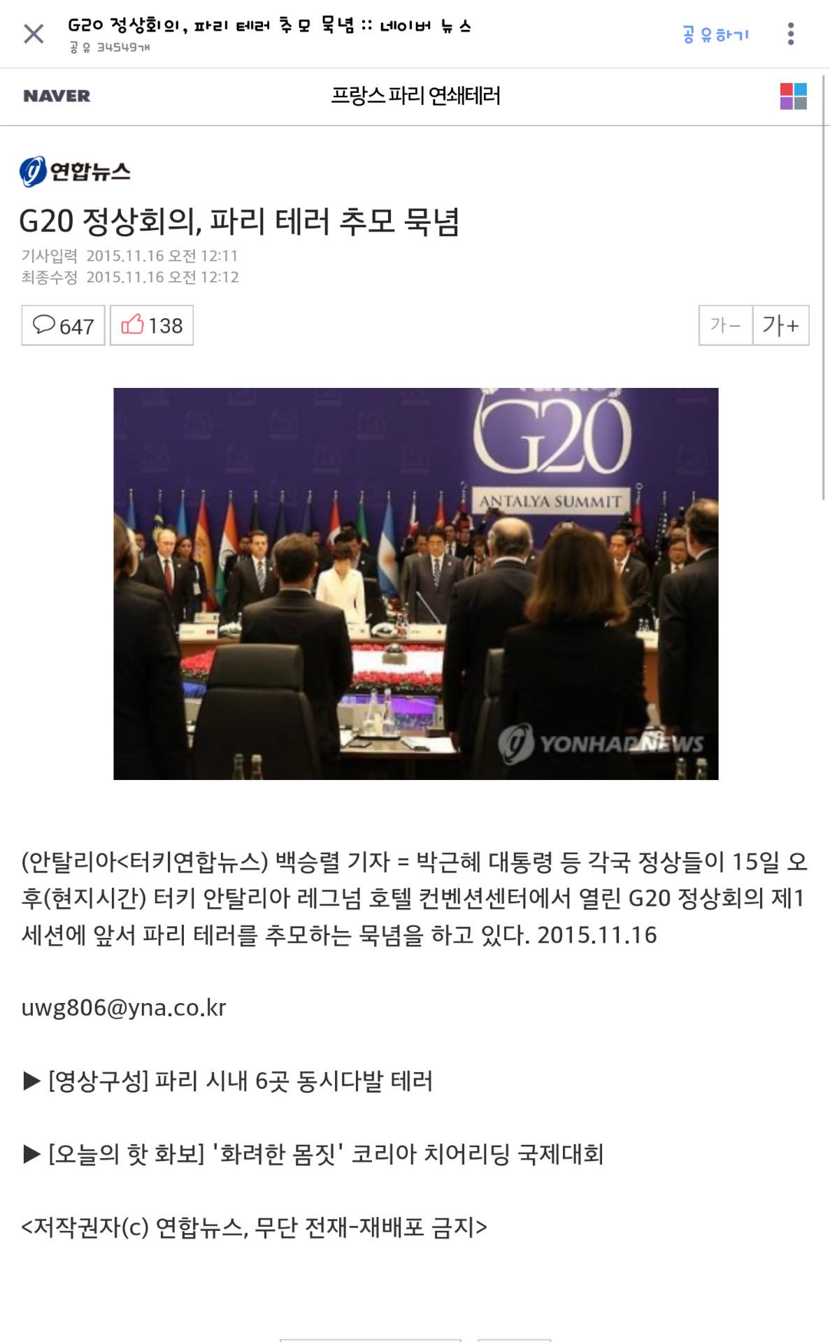 G20정상회의, 파리 테러 추모 묵념 > 자유게시판