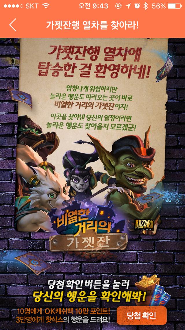 검색창에 하스스톤 입력하고 당첨확인 누르면 핫식스보내줍니다