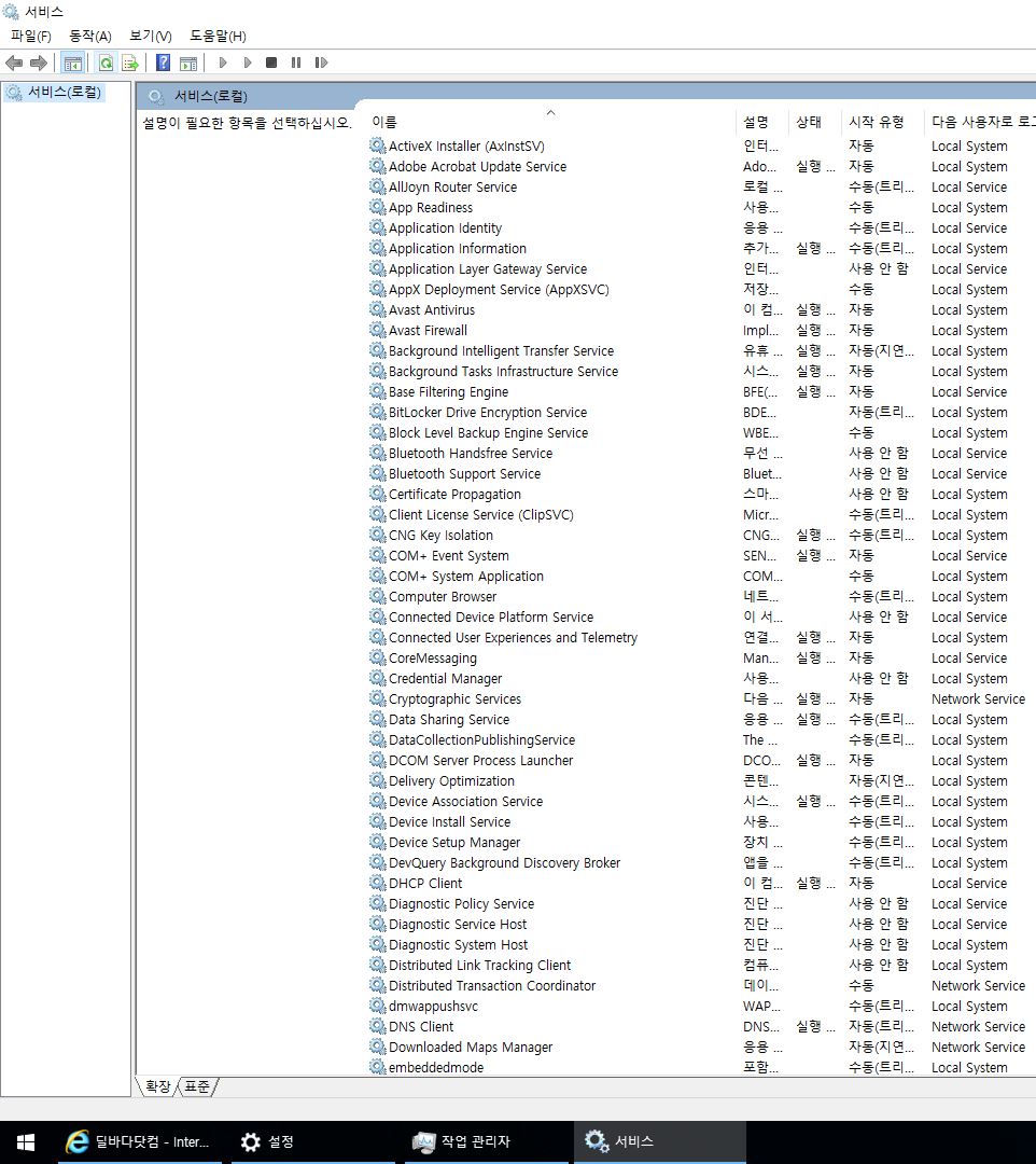 도움 가능하신 윈10 서비스 순정상태(?)이신 분 계시면 부탁드리겠습니다.....