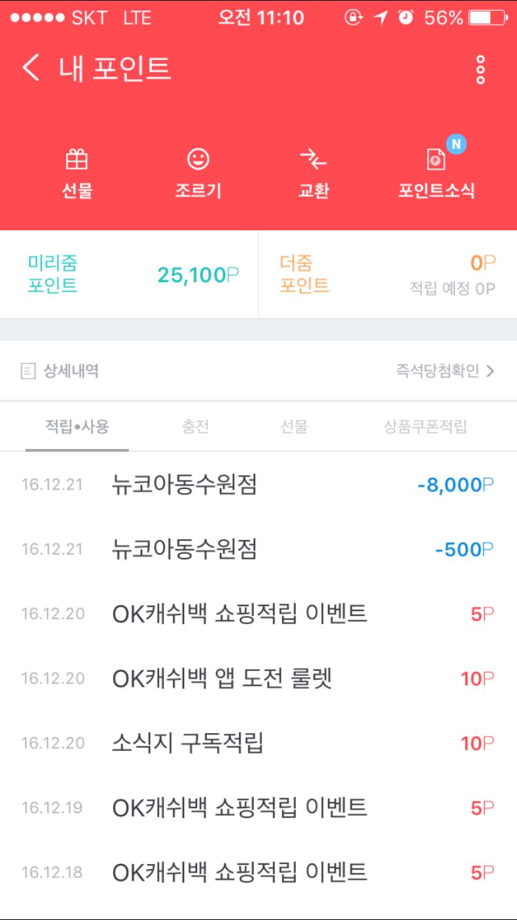 이번 미리줌 3천점 + 기존부터 해오던 미리줌 5천점 + 개인보유 500점 = 총8,500점 이 차감되었네요.