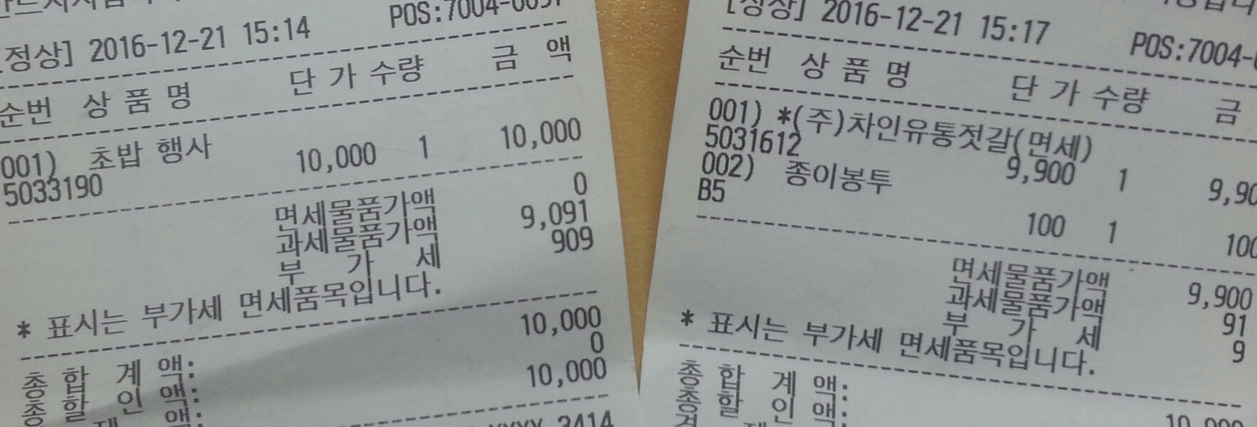 우동, 떡4팩에 5천원, 콩나물, 맛동산 샀어요 ㅋㅋ