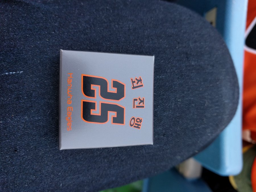 저렇게 선수 등번호가 새겨진, 한화 유니폼 컬러로 포장된 선물(초콜렛이라 들었음)과