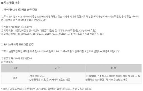 기존의 멤버쉽 종류는 그대로 유지하면서 캐시백 적립분을 데이터와 11번가 포인트로 주겠다는 건가요?