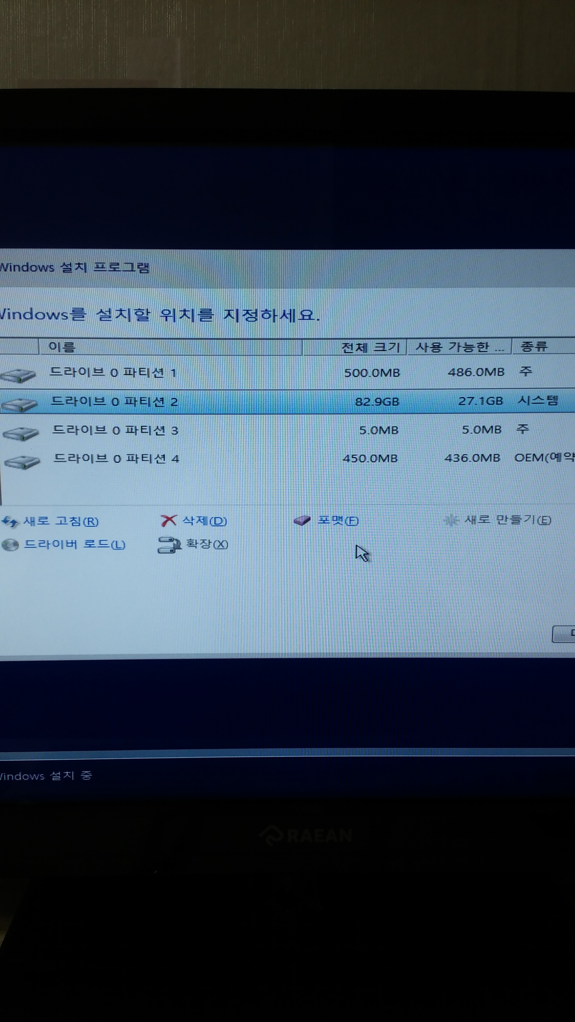 어찌 삭제하나여 파티션1 3 4 이거 다 삭제하면되나여? |