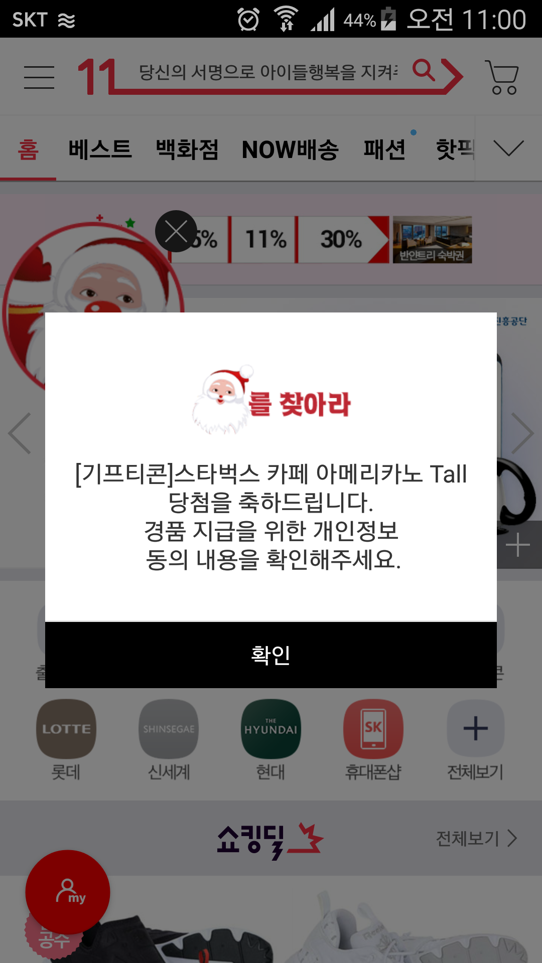 11번가 땡타임 당첨