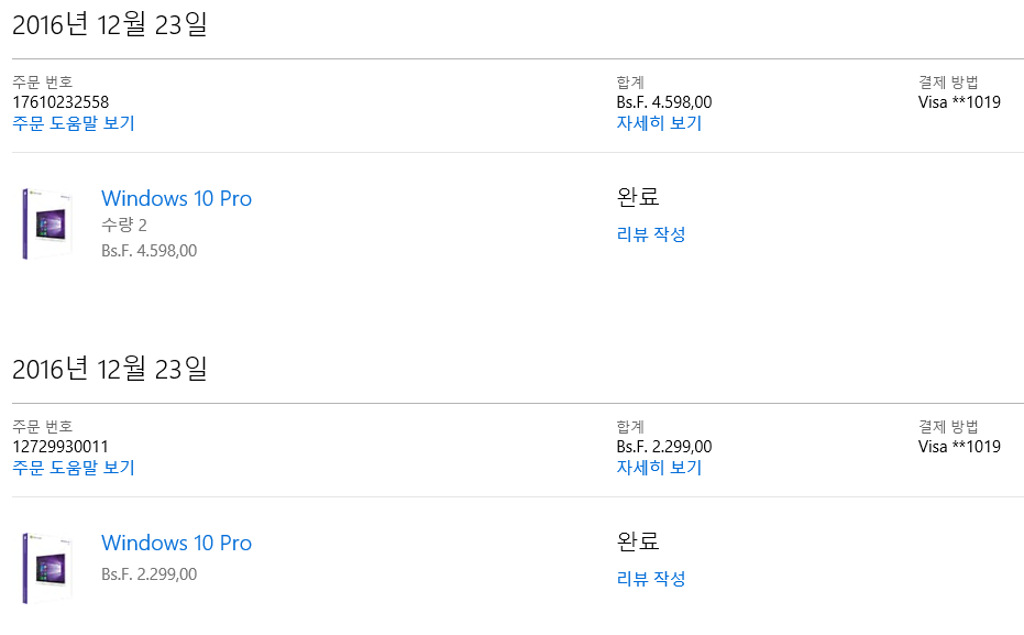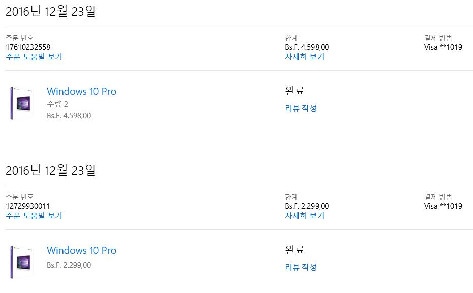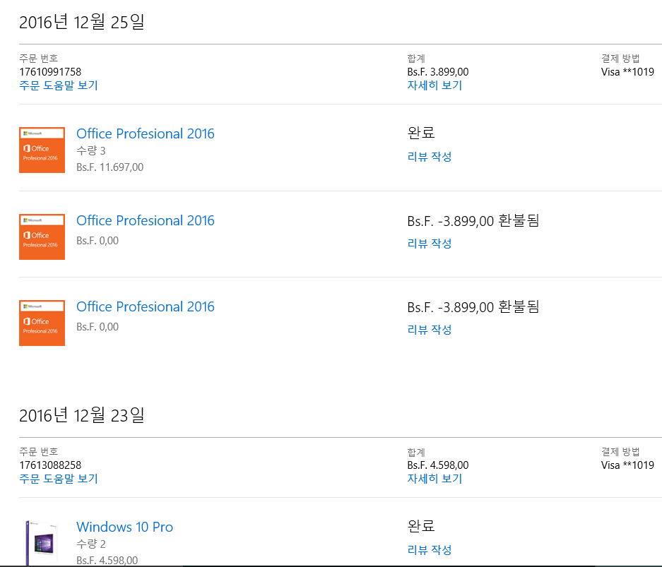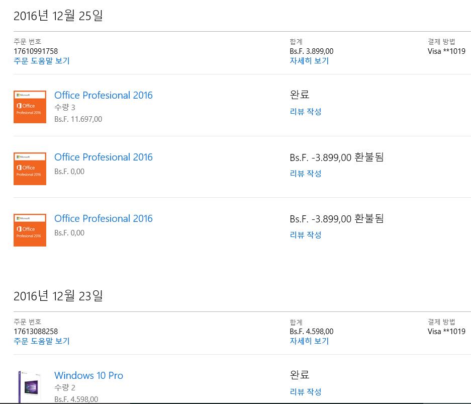 윈도우10 프로는 다 살아남았고, 오피스2개와 비지오 프로는 환불당했습니다ㅠ