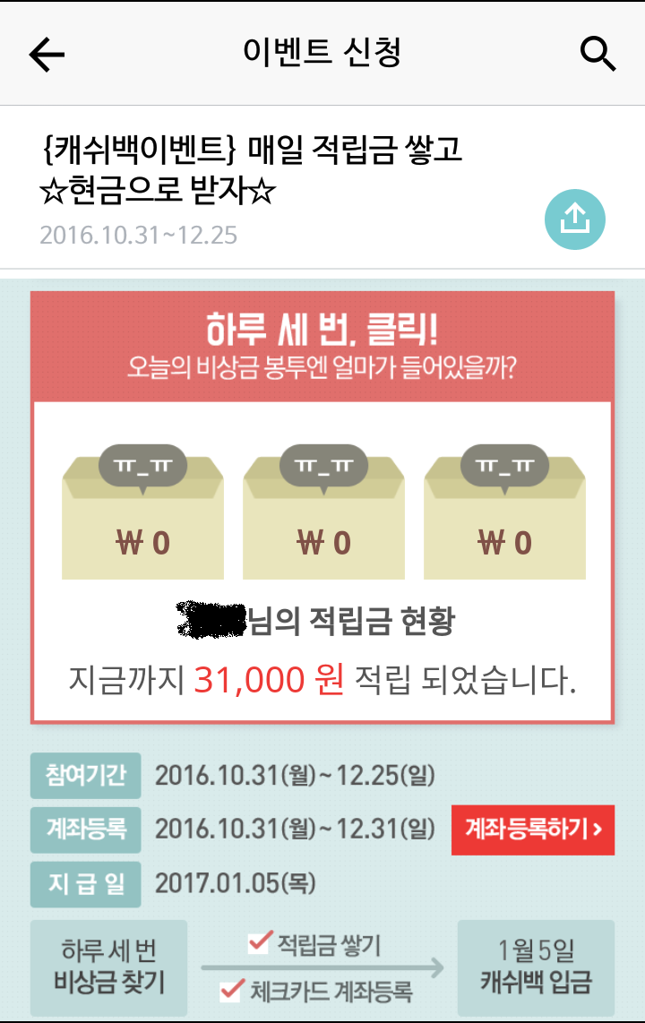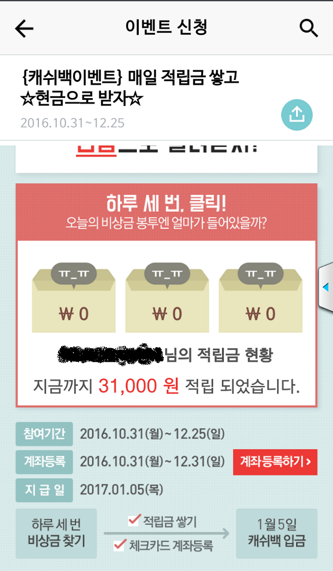 가족꺼 1개랑 해서 2개 했는데 2개다 31000원 모였어요.