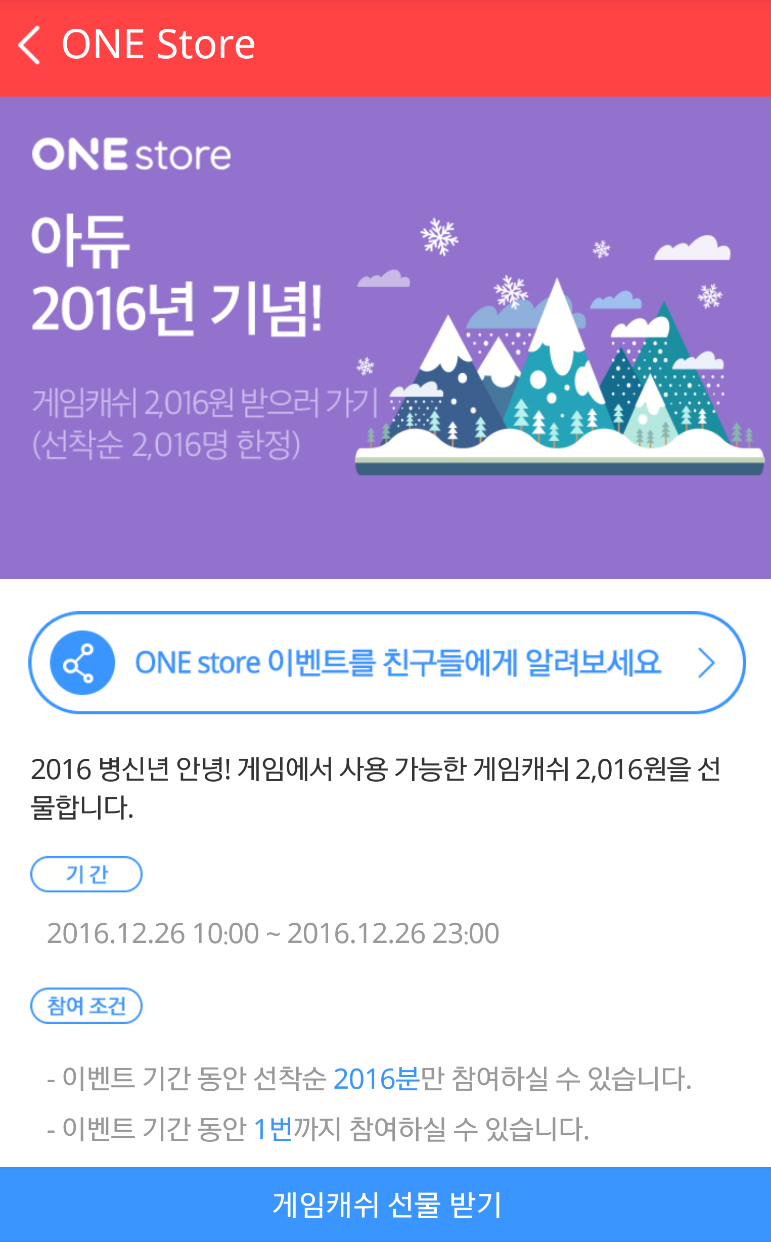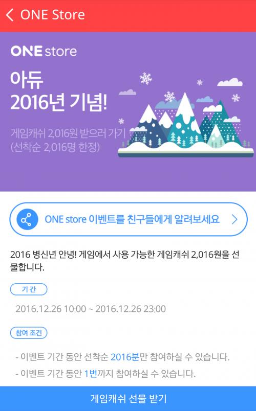 글게요ㅎ 2016명 주는데 원스토어 사용하는 사람들이 많은지 광속 종료네요ㅠ