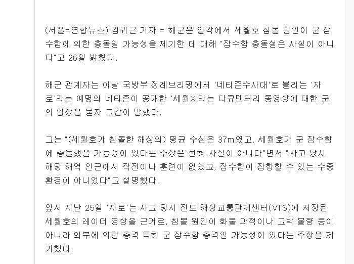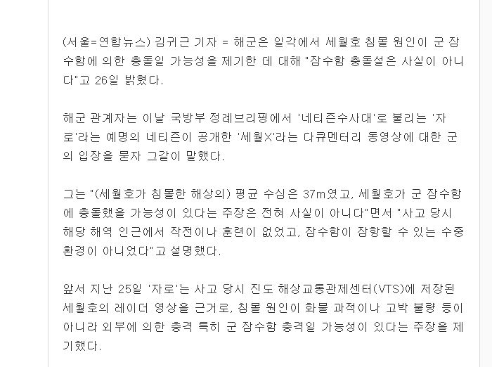 세월호 - 수심 국방부 주장 37m / 자로 자료 50m 구역 ===> 해군 잠수함 기동 못해 최소 50m 수심은 되야...