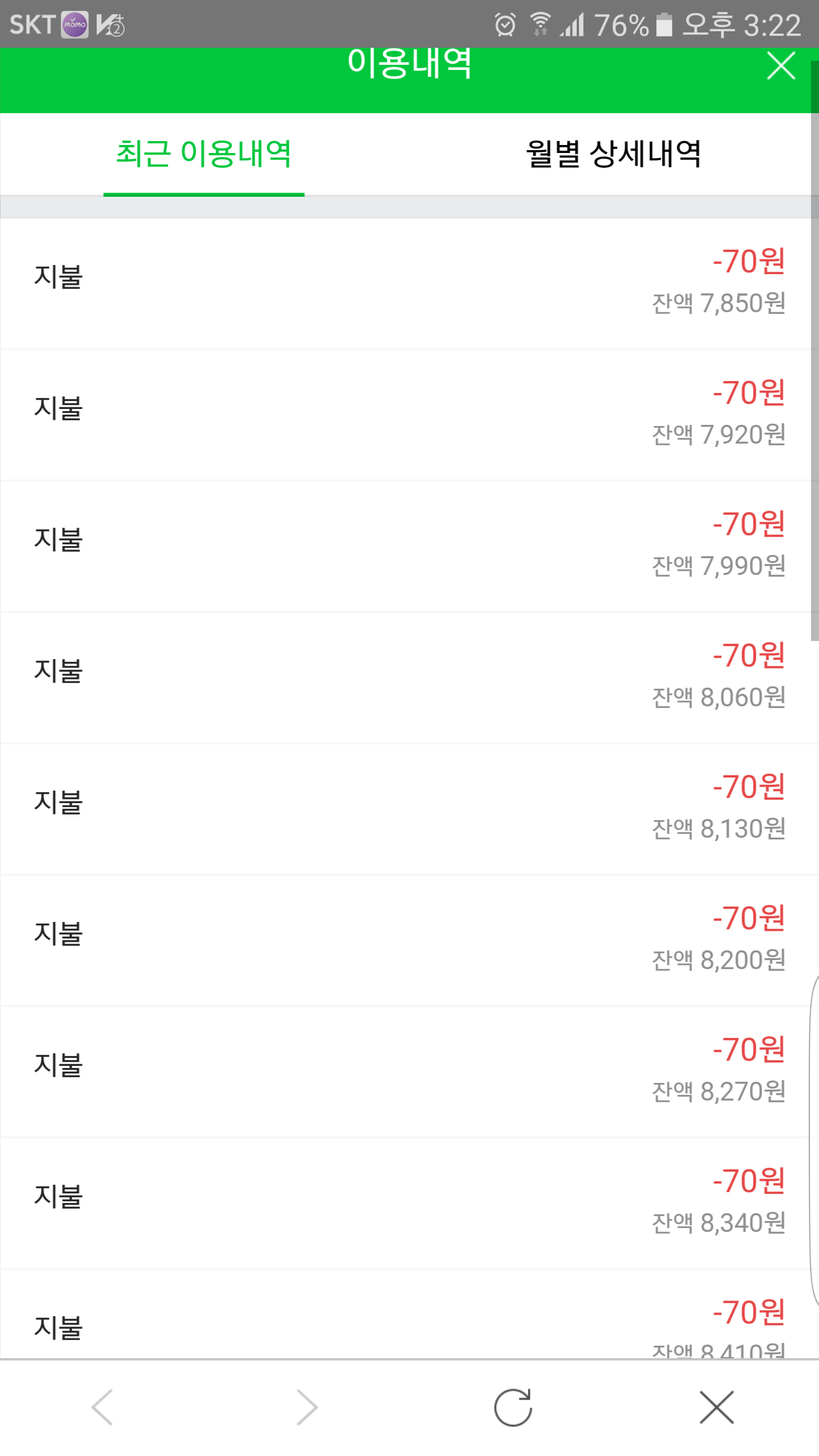 일단 잔액으로 짐작해서 70번 한거같긴한데