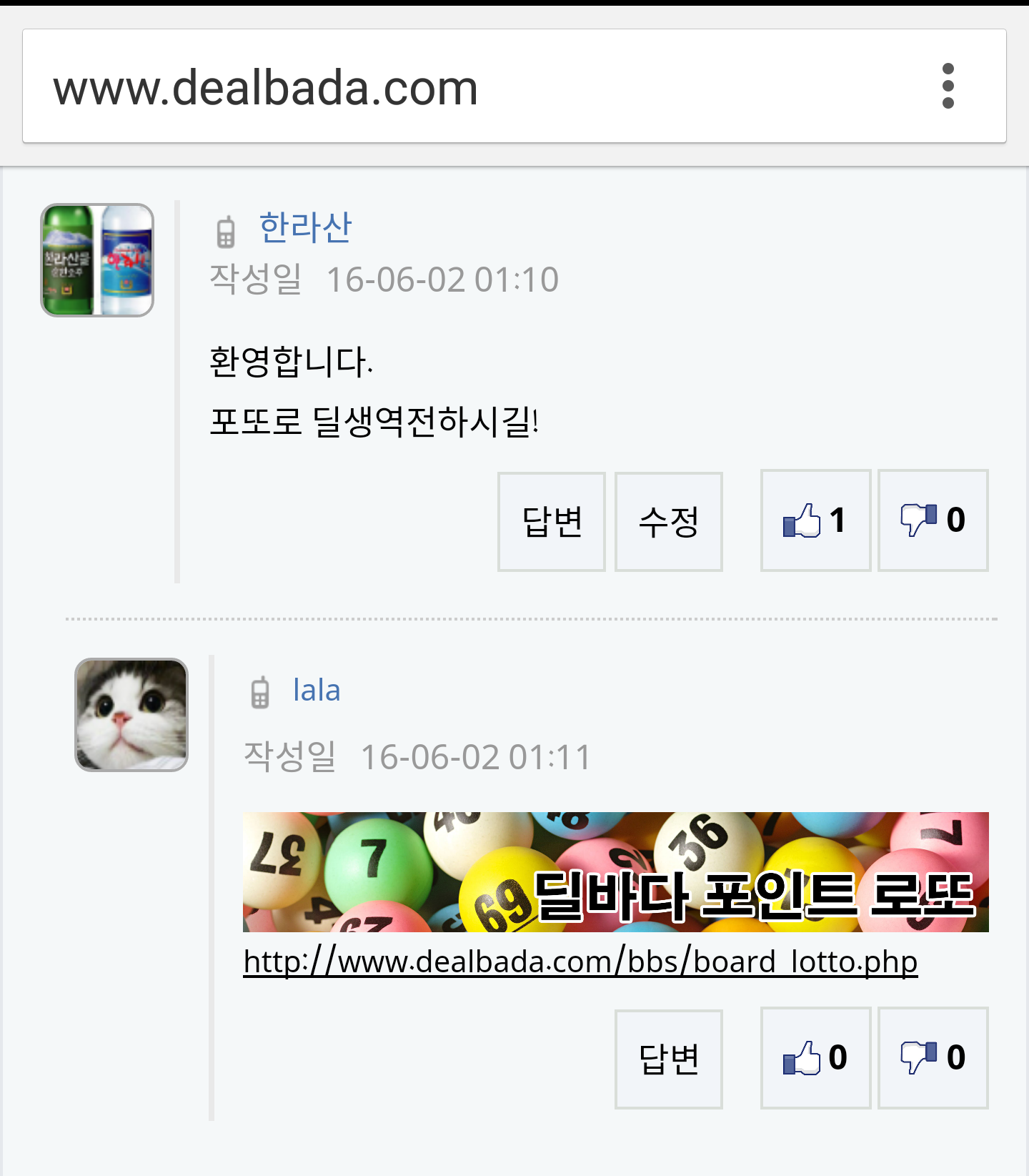 내가 쓴 코멘트 관리하는데 환영인사에 계속 +1 표시있어서 눌러보니 라라봇님이..
