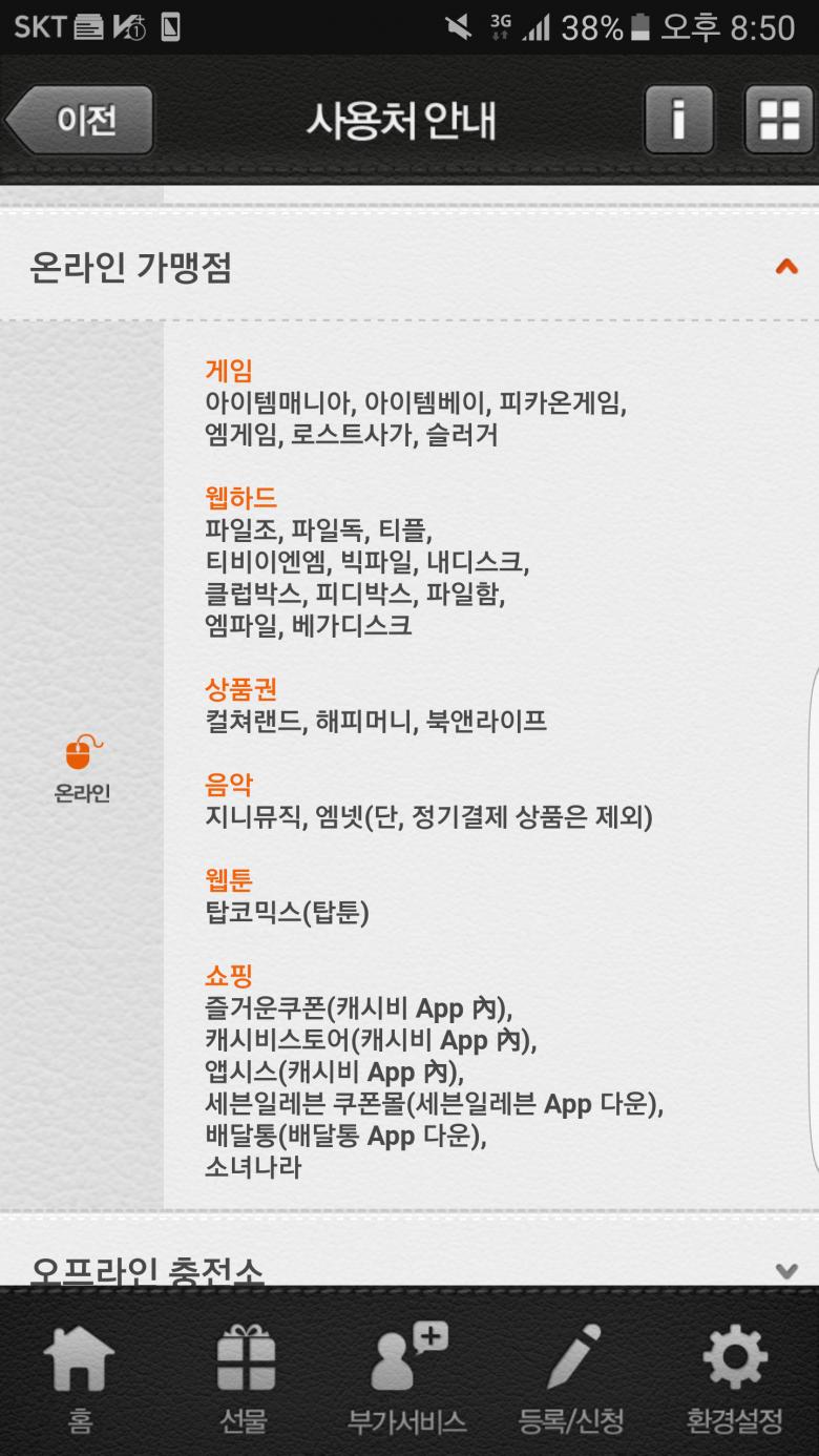 캐시비어플키면 나오는 캐시비스토어 이런거 말하는건가요?