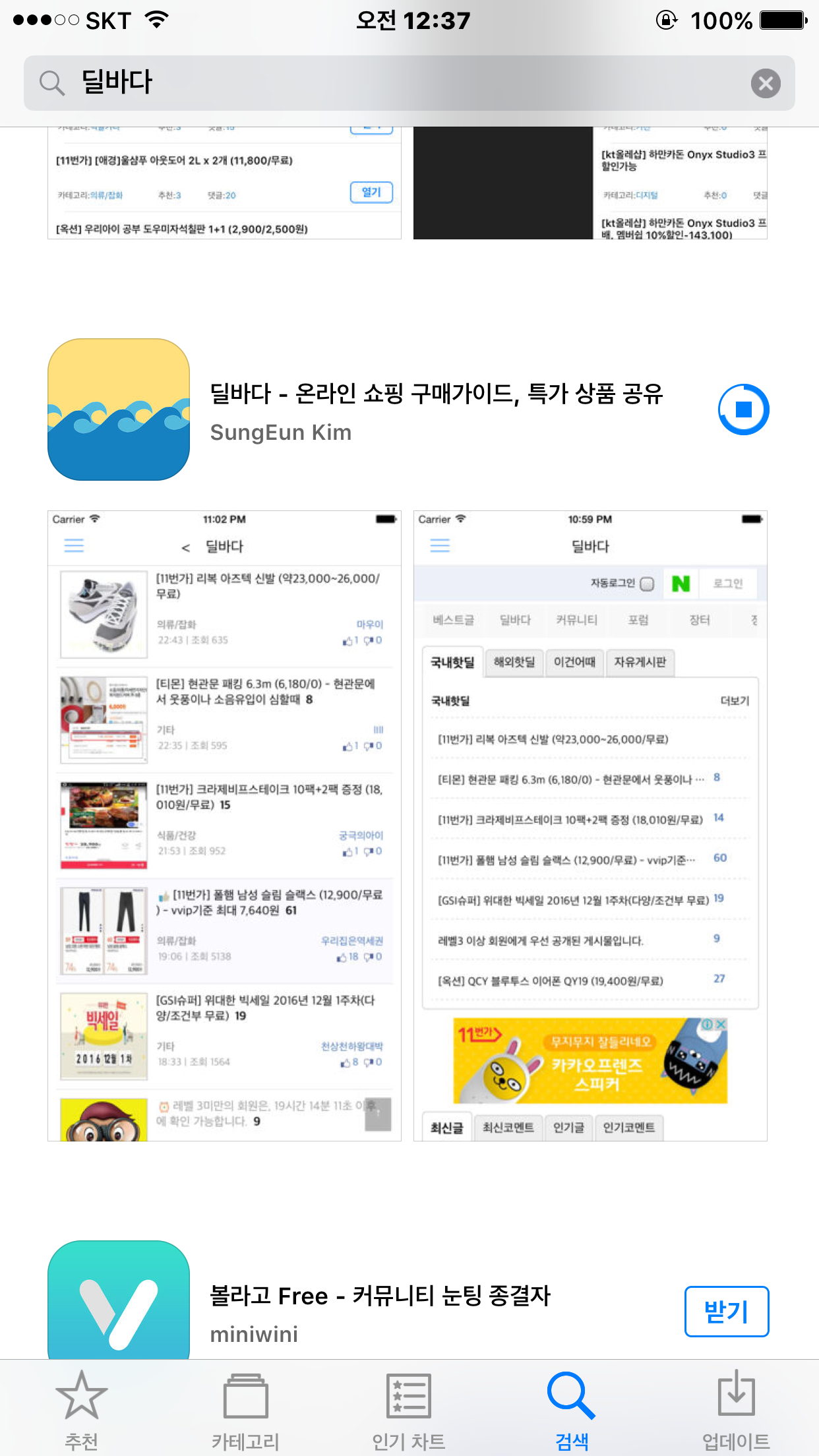 아이폰에 딜바다 앱을 설치할 때 보니 제작자 이름이 김성은으로 나오네요..