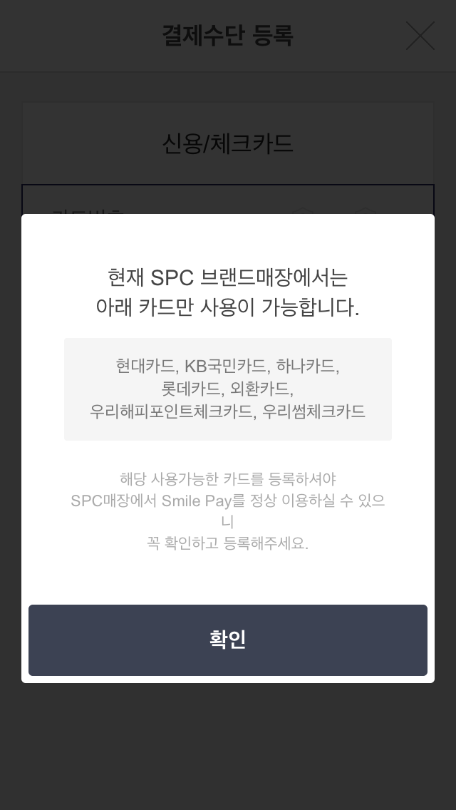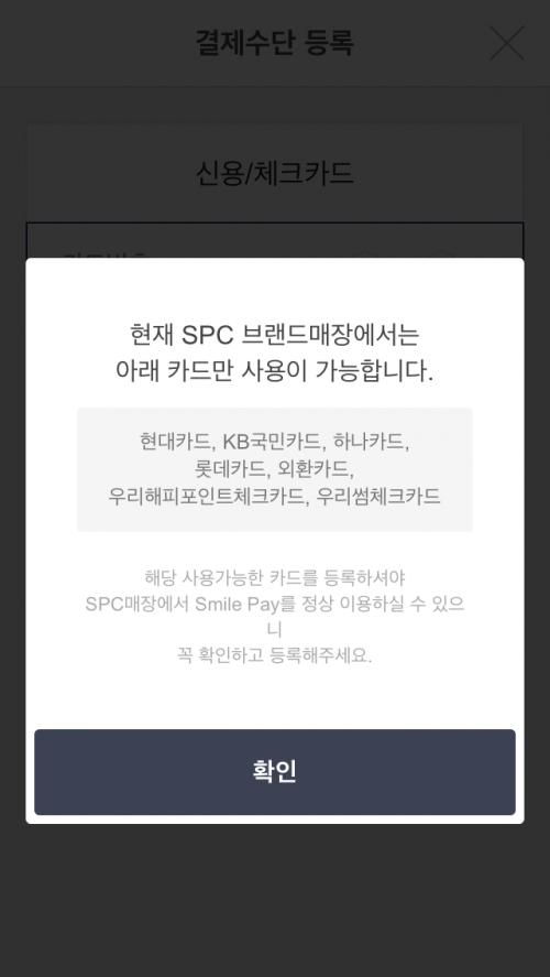 던킨에서 지갑 꺼내기 귀찮아서 스마일페이로 결제하려니까 비씨카드 막혔네요