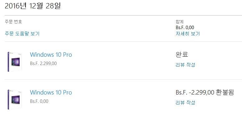 주문 기록에 환불 처리됨으로 뜨는 군요... 베네수엘라 마소 계정에는 아직 완료 상태로 나오긴 하지만...