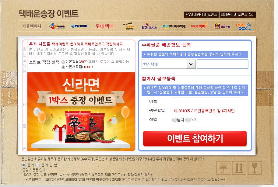 신라면 한박스 증정인데 막상 페이지를 자세히 보니 작게 한박스or2개 라고 해놨네요