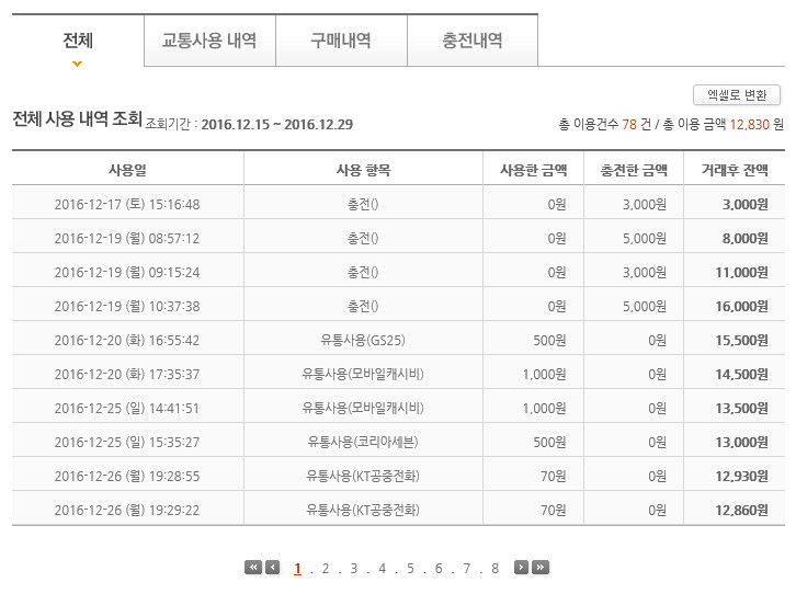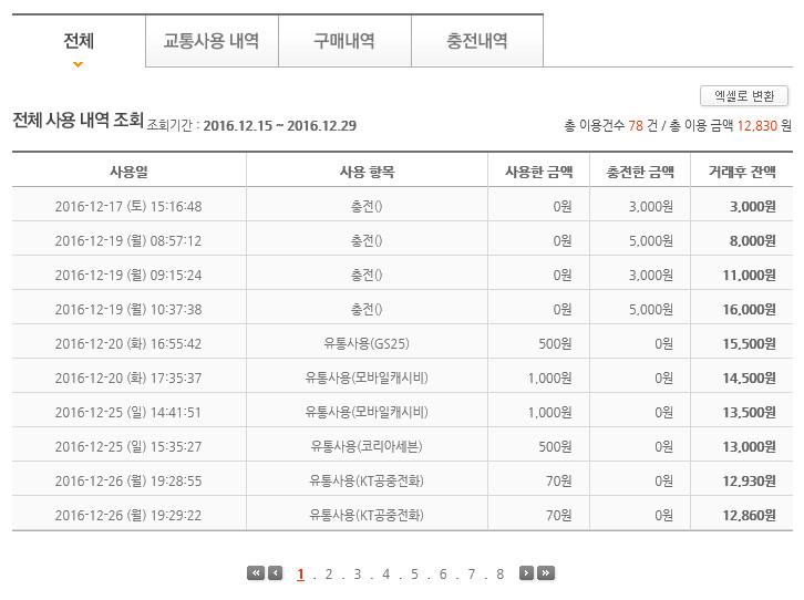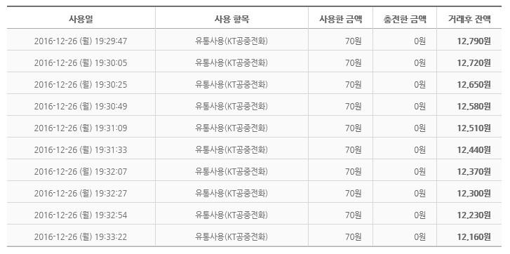 제꺼랑 같이 한 다른 가족 캐시비도 조회해봤는데 공중전화 1건이 비네요. ㄷㄷㄷㄷ