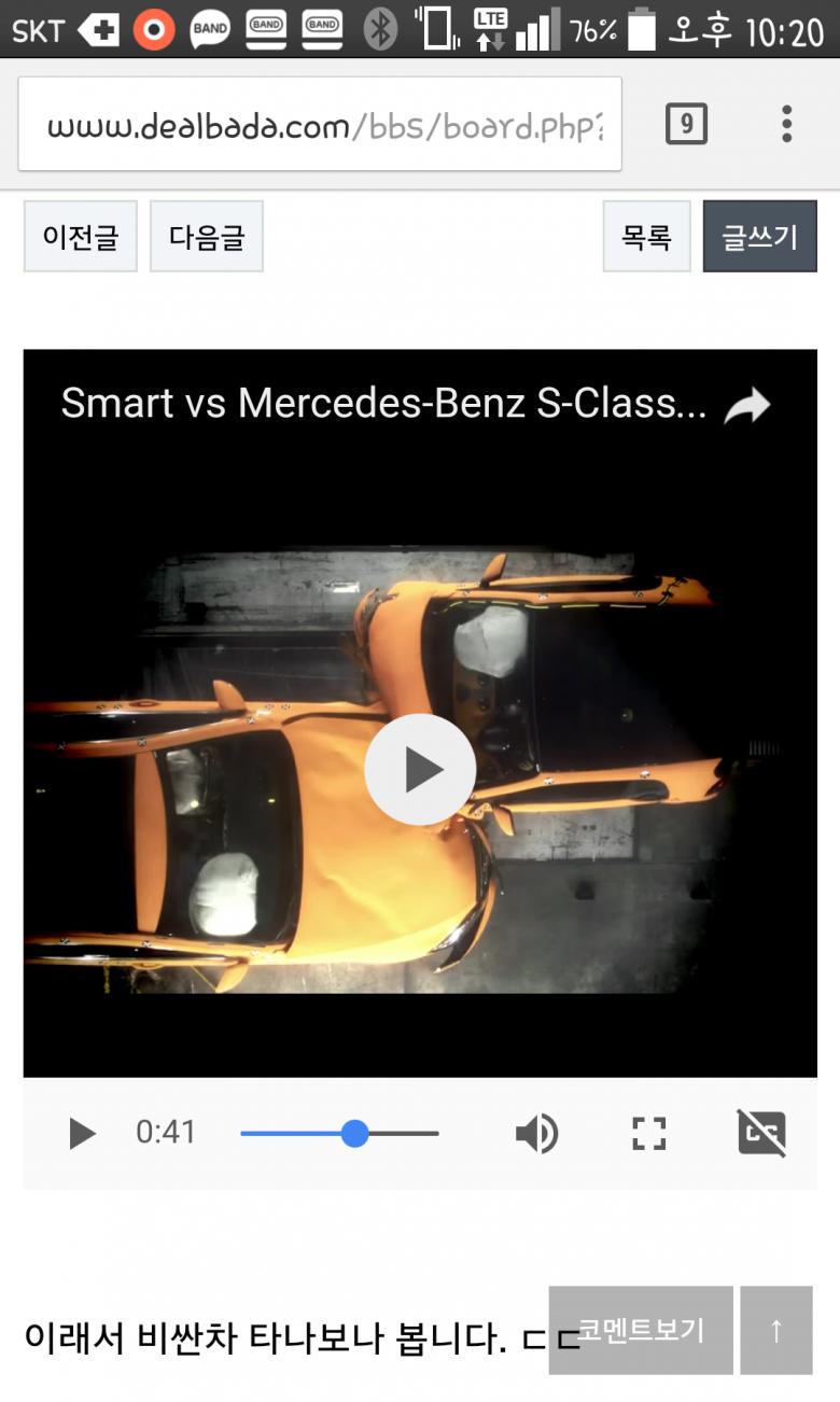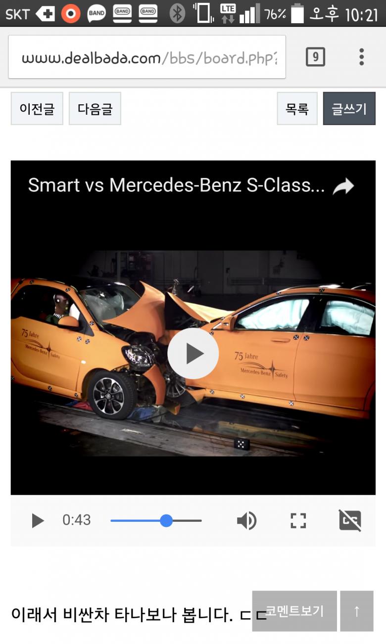정작 글 내용과 달리  동영상 내용은 경차 스마트의 안전성 ㅋㅋㅋㅋㅋㅋㅋ
