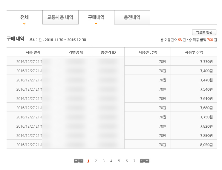 전 77건 했는데 73건인가 잡히고 나머지는 돈만 나가고 사용내역에 안뜨네요.. 에러코드 찍히고 바로 전화 끊겼을때 돈은 나갔는데 그거가 누락됐나봐요.. |