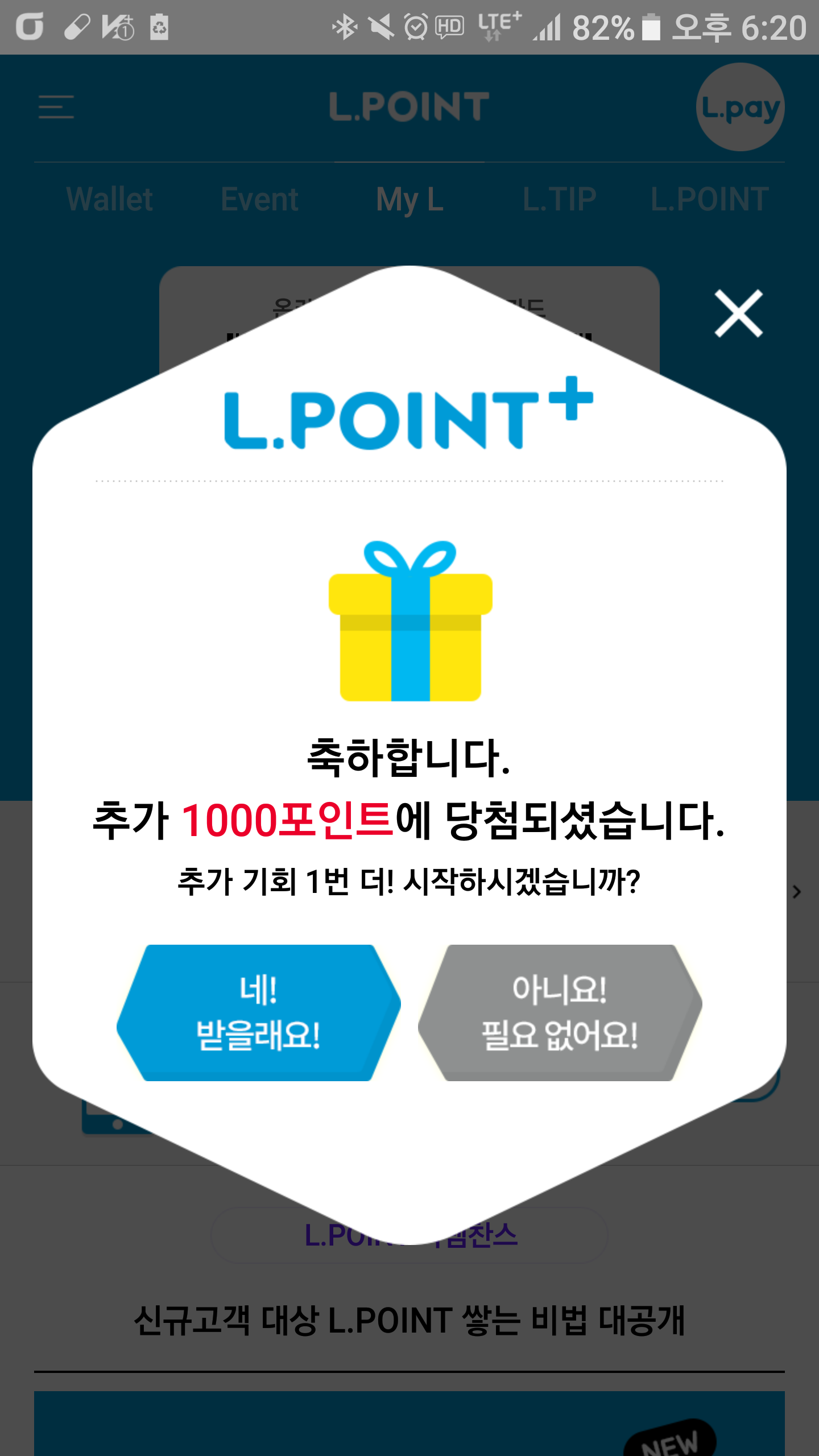 이게 엘포인트 적립 하면 생기는 찬스 룰렛 돌리는거죠? |