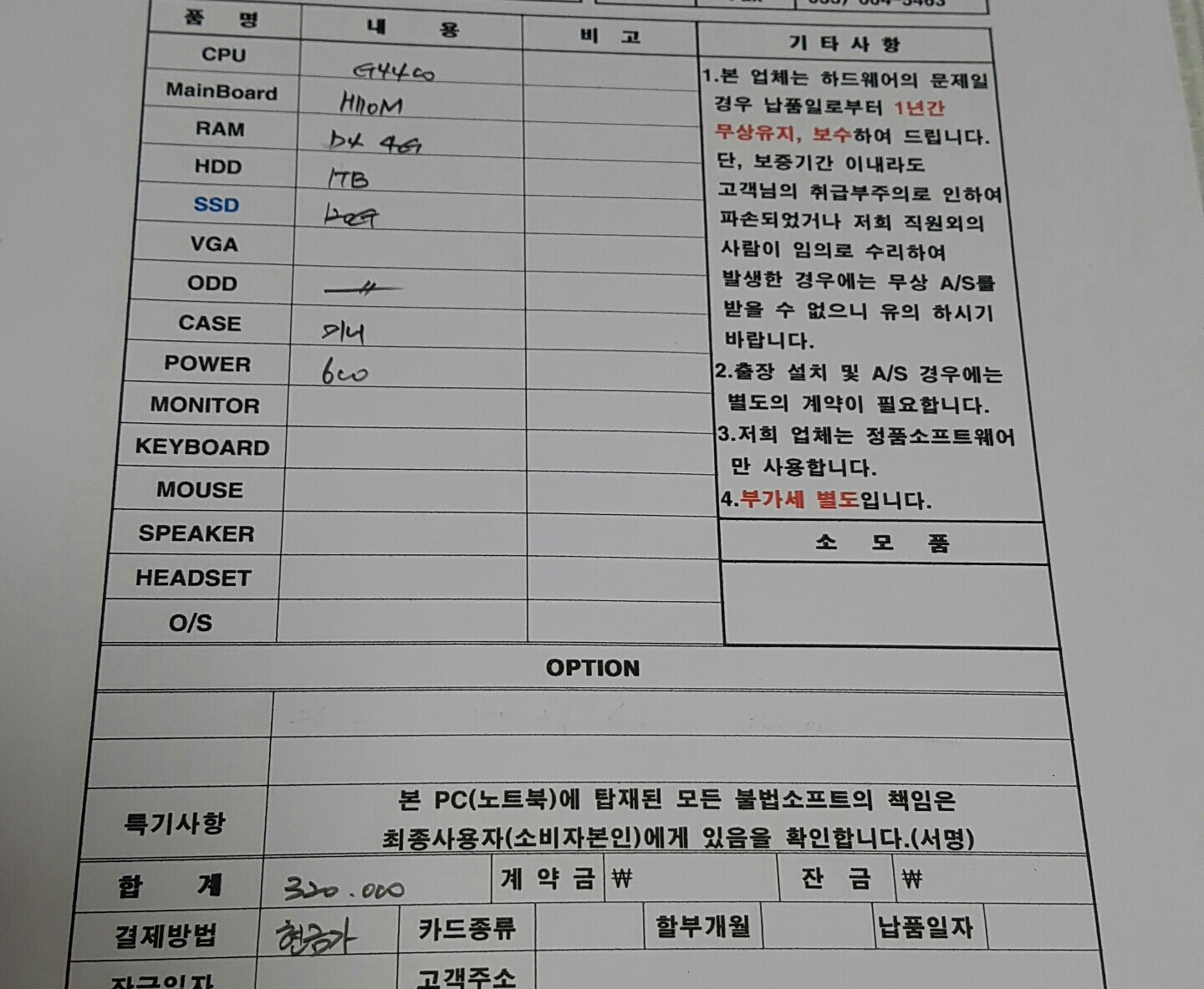 부품을 정확하게 알려주지 않아서 썩 믿음이 가지는 않는군요. 잔고장 많은 모델로 조립해주고 나중을 기약하는 양아치들도 있어서요.