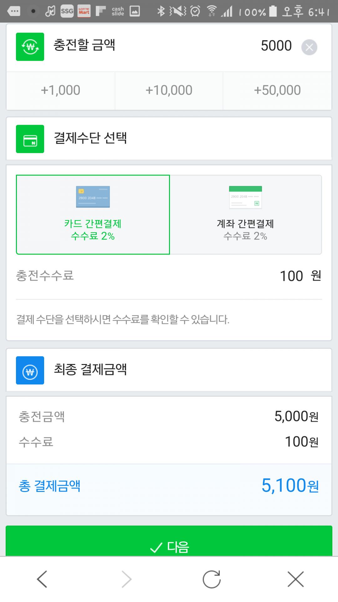 네 저는 잔액이 이미 5만원 정도 있는데