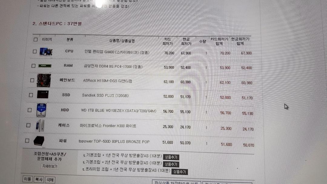 원하시면 만오천원이나 2만원 추가해서 조립을 해서 받을 수도 있어요~