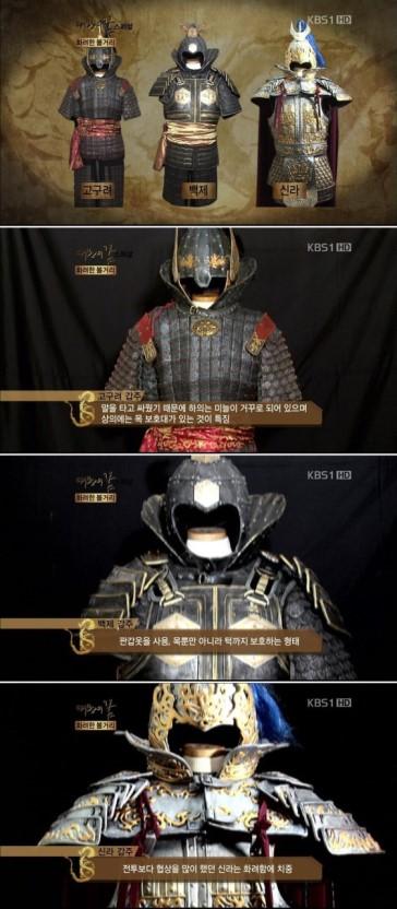 대왕의 꿈이 그나마 사극중 갑옷고증이 나은 편이긴 하지만.. 그래도 학계 정설에 비해 터무니없는 상상력이 심하게 들어간 편입니다.