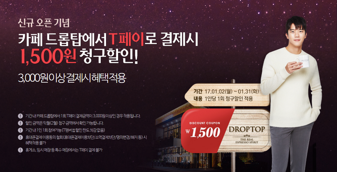 T페이 드롭탑 1500원 청구할인 받으세요~
