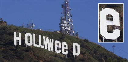9. 'HOLLYWEED' → ‘위드(weed)’는 ‘대마초’ 의미. 캘리포니아 주는 지난해 11월 대마초를 주민투표로 합법화. 이를 환영하는 주민들이 LA 상징 간판 'HOLLYWOOD‘를 weed로 고치는 장난.(동아) 외) ▼사진
