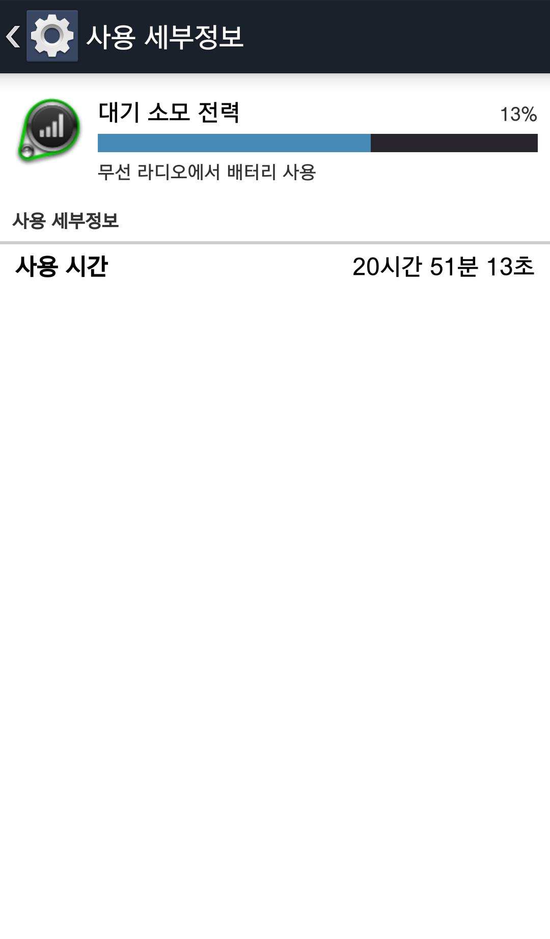 대기 소모 전력 13%, 안드로이드 OS 10%, 안드로이드 시스템 9%
