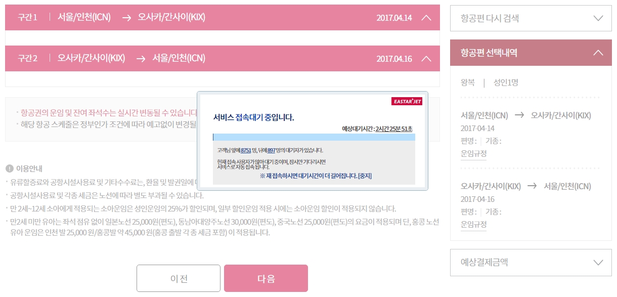 이스타 특가 이벤트 한다길래 안될줄 알면서 호기심에 기다렸다 접속했습니다.