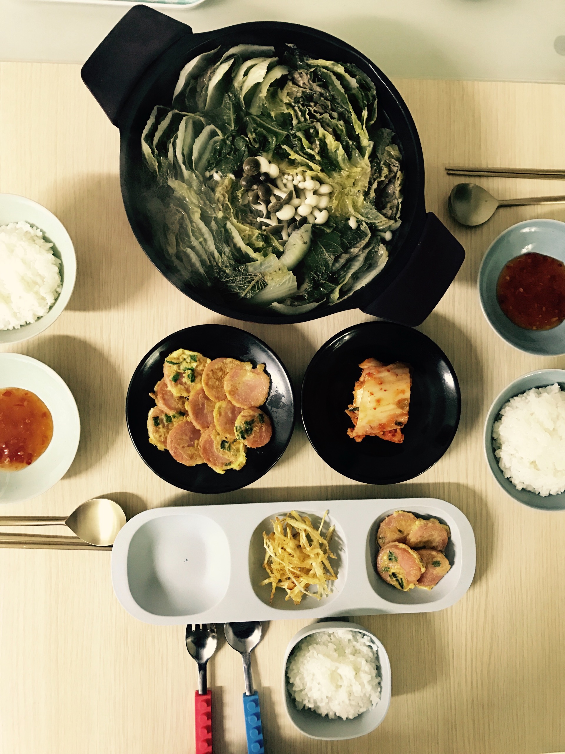 식탁이 반접이라 불올려놓고 재료들 넣고 건져가며 아이 밥챙기며 먹을 자신이 없었어요 ㅎㅎ