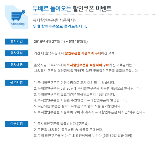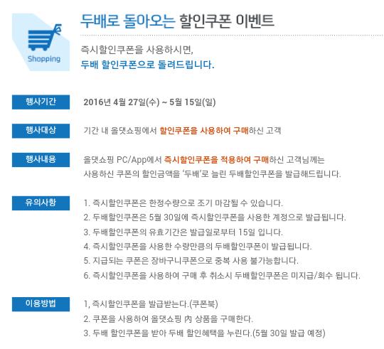 올댓쇼핑 MY올댓에서 내쿠폰 내역보니 2배할인 쿠폰 어쩌구 해서