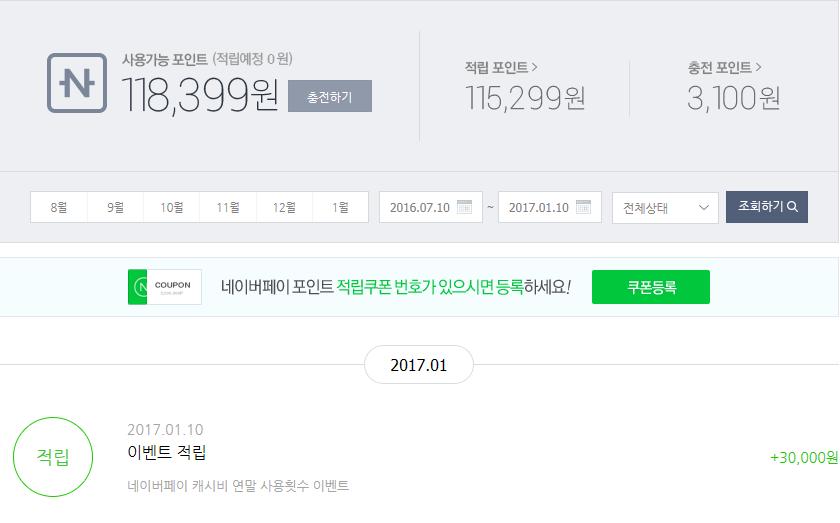 네이버포인트 캐시비충전 막히기전에 한 2~3달  충전했으니