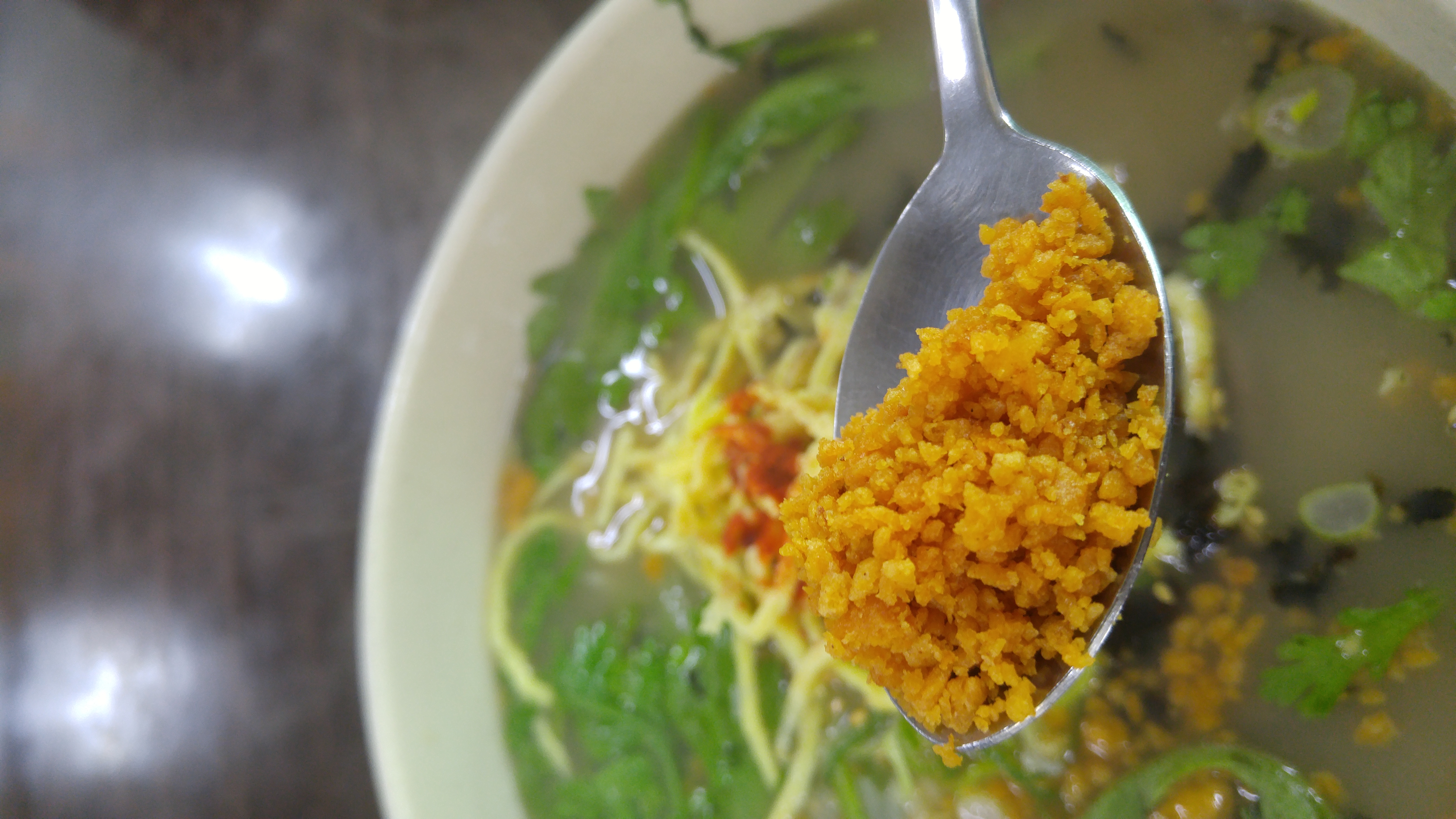 숫가락에 담긴건 뭔가요? |