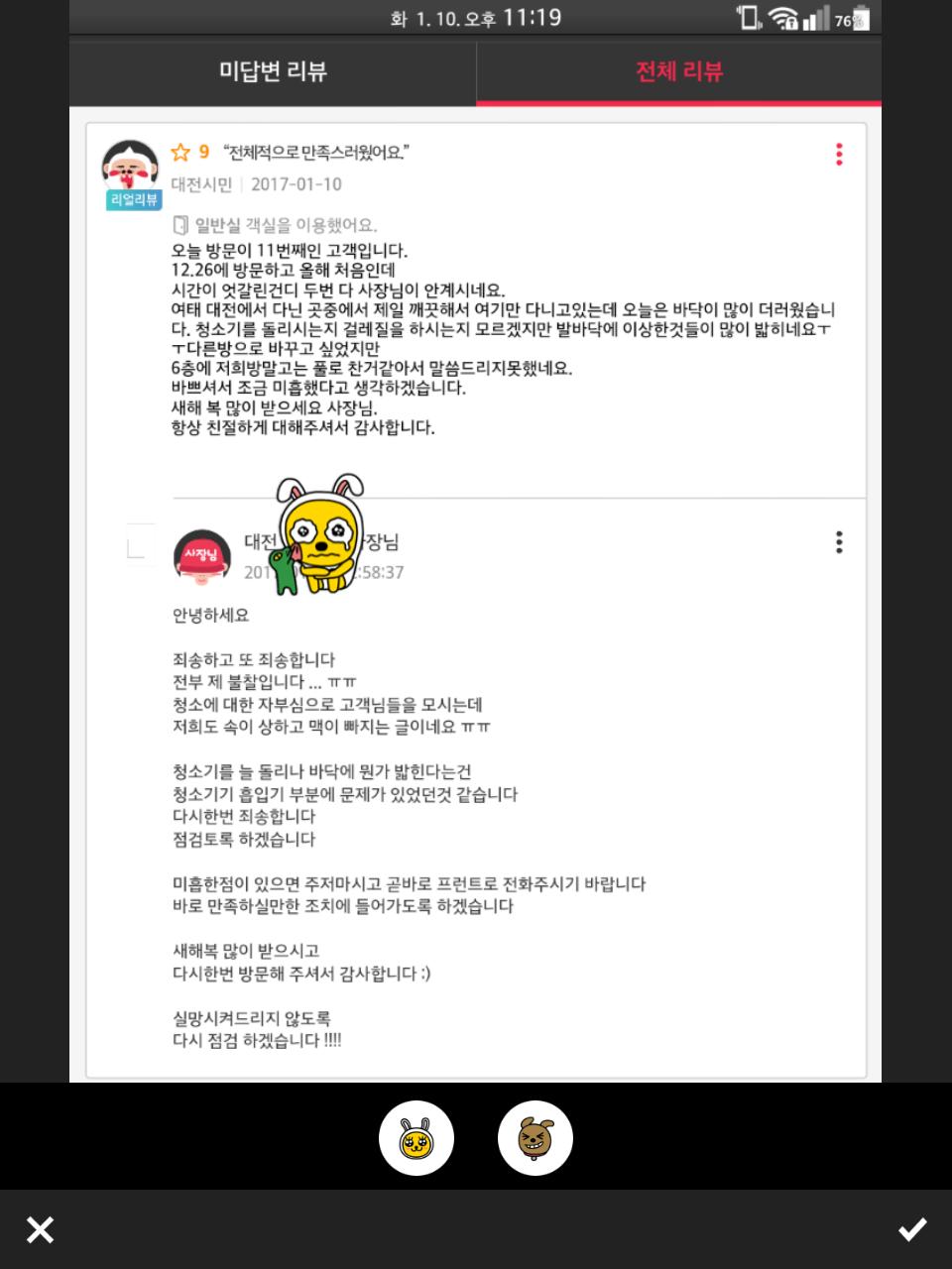 고객도 늘 만족했는데 이번엔 특별히 이랬다 정도인듯 보이네요. 소통이 좋아보입니다. 자칭타칭으로 저도 남자치고 집이 깨끗한편인데 열심히 청소해도 늘 조금은 부족하더라고요. 오늘도 힘내세요~~!! |
