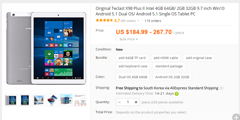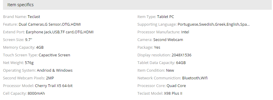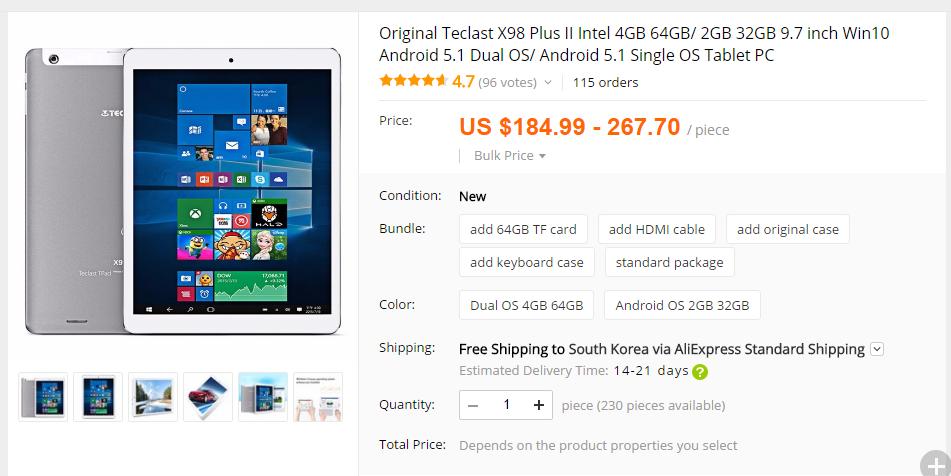 두번째 제품은 teclast x98 plus 2 입니다.