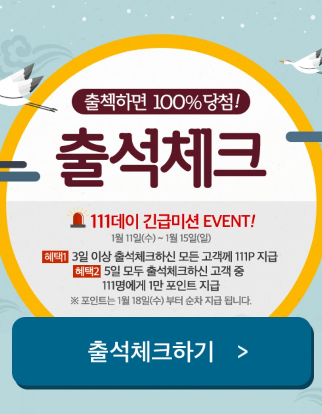 위메프 3일이상 출첵시 111p지급(오늘부터)