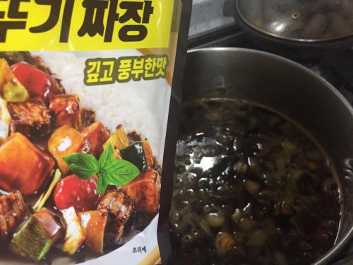 위에 야채랑 밑에 짜장만 넣으면 완성인가요? | ||