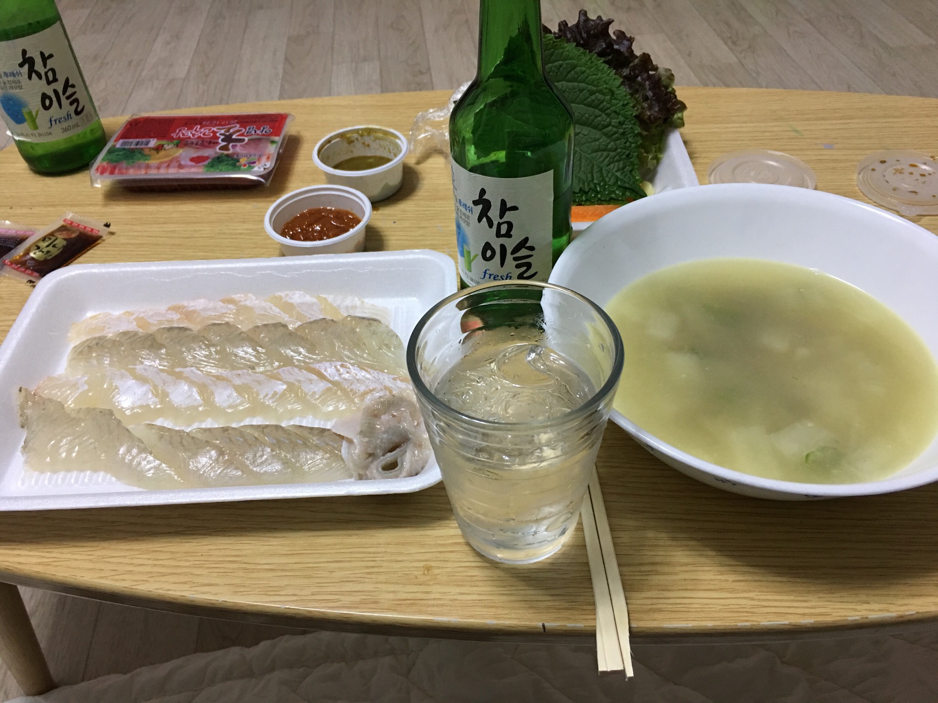 마누라 여행이 예상치않게 하루 길어져서..바지락탕끓여서 동네 굉어 소자랑 츄릅 합니다...