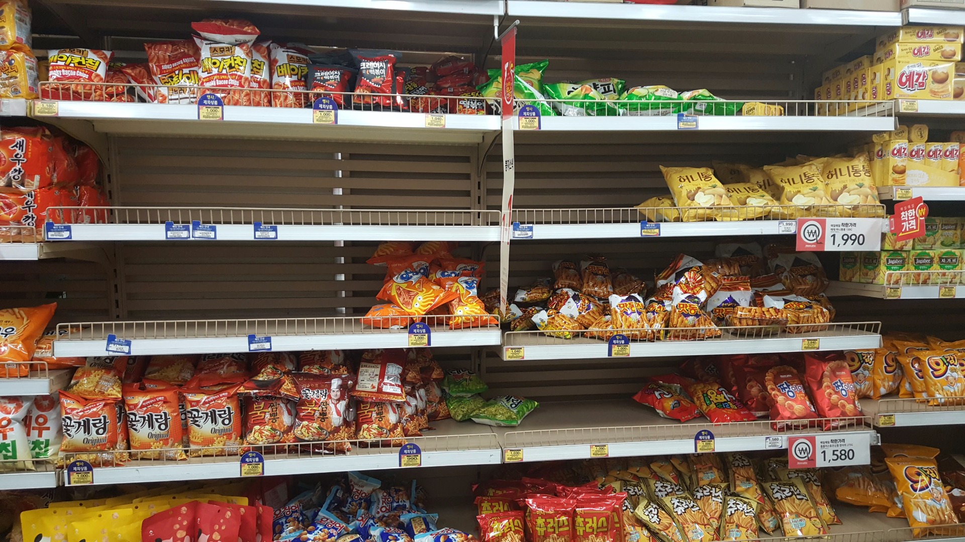 1+1에 해당하는 포카칩, 꼬깔콘, 수미칩 오리지널, 새우깡 등등 인기품목 다 털려있고 메리트없는 균일가 품목만 남아있네요
