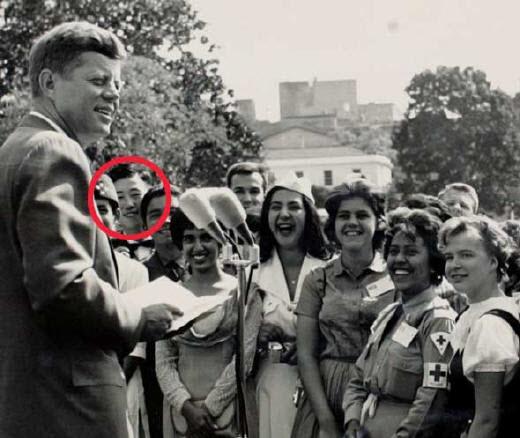 반기문 외교통상부 장관은 1962년 충북 충주고 3학년 때 국제적십자사 비스타(VISTA) 프로그램의 한국 대표 4명 중 1명으로 선발돼 미국 워싱턴에서 존 F 케네디 대통령을 만났다. 케네디 대통령 오른쪽에 보이는 학생(점선 안)이 반 장관이다.