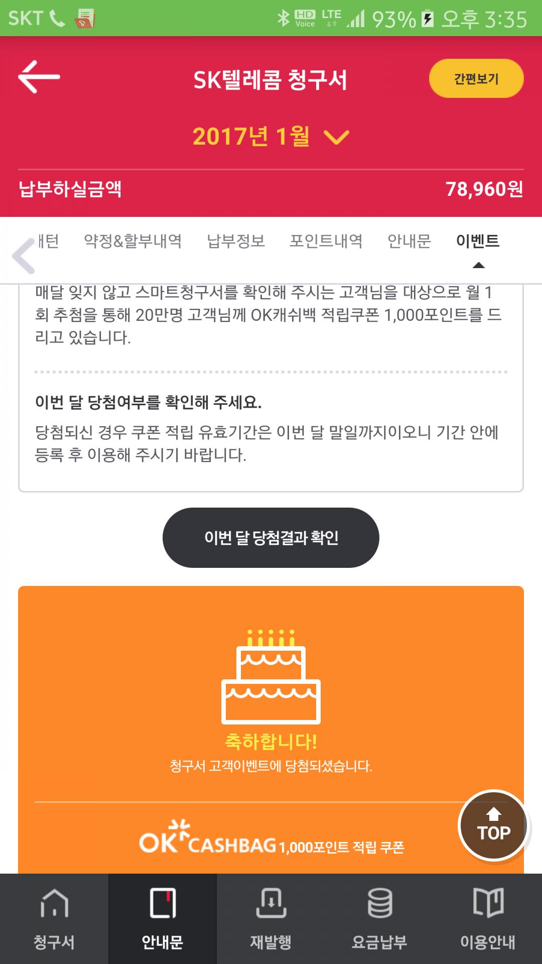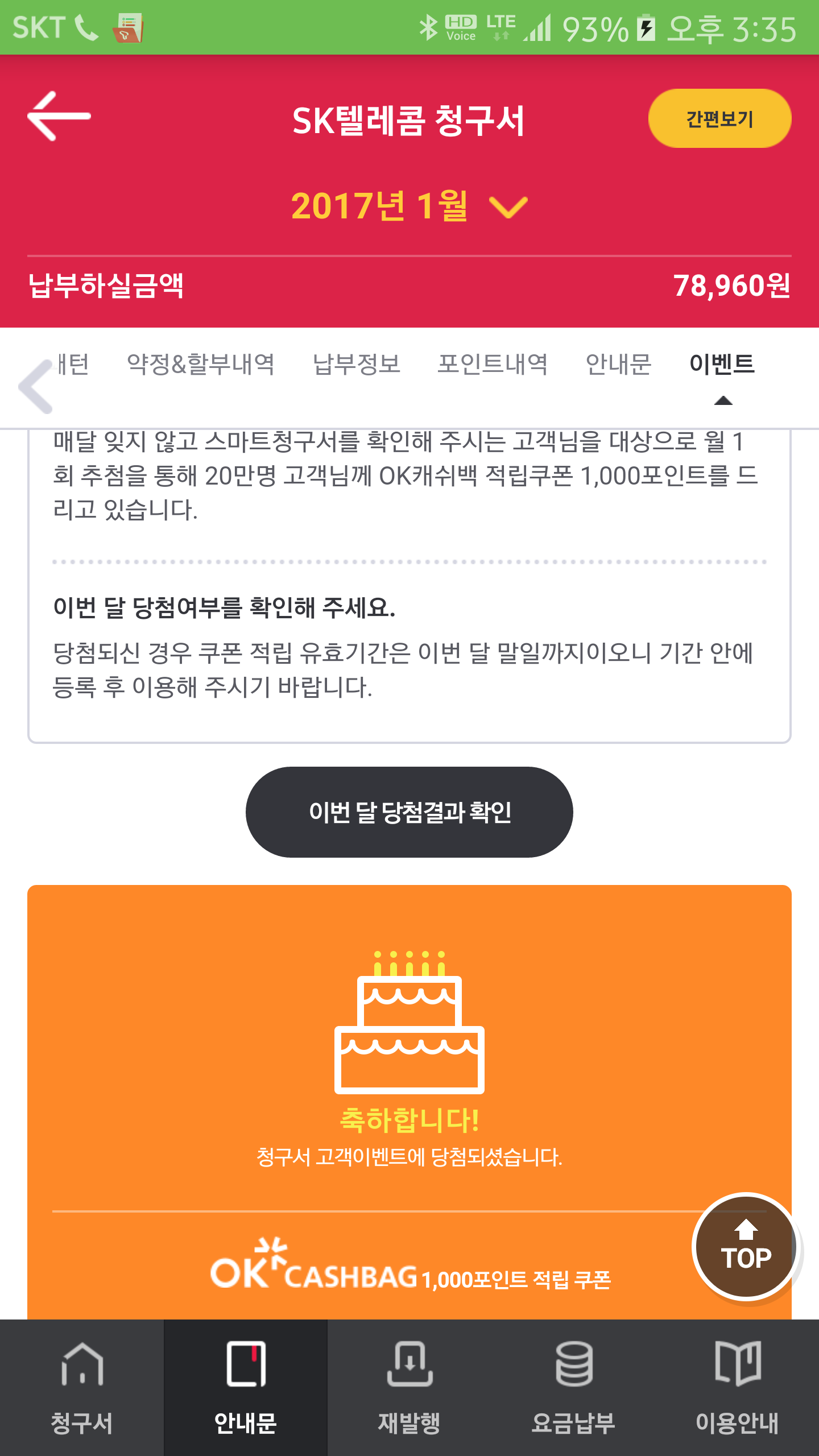 스마트청구서 1000포당첨이네욬ㅋㅋㅋ