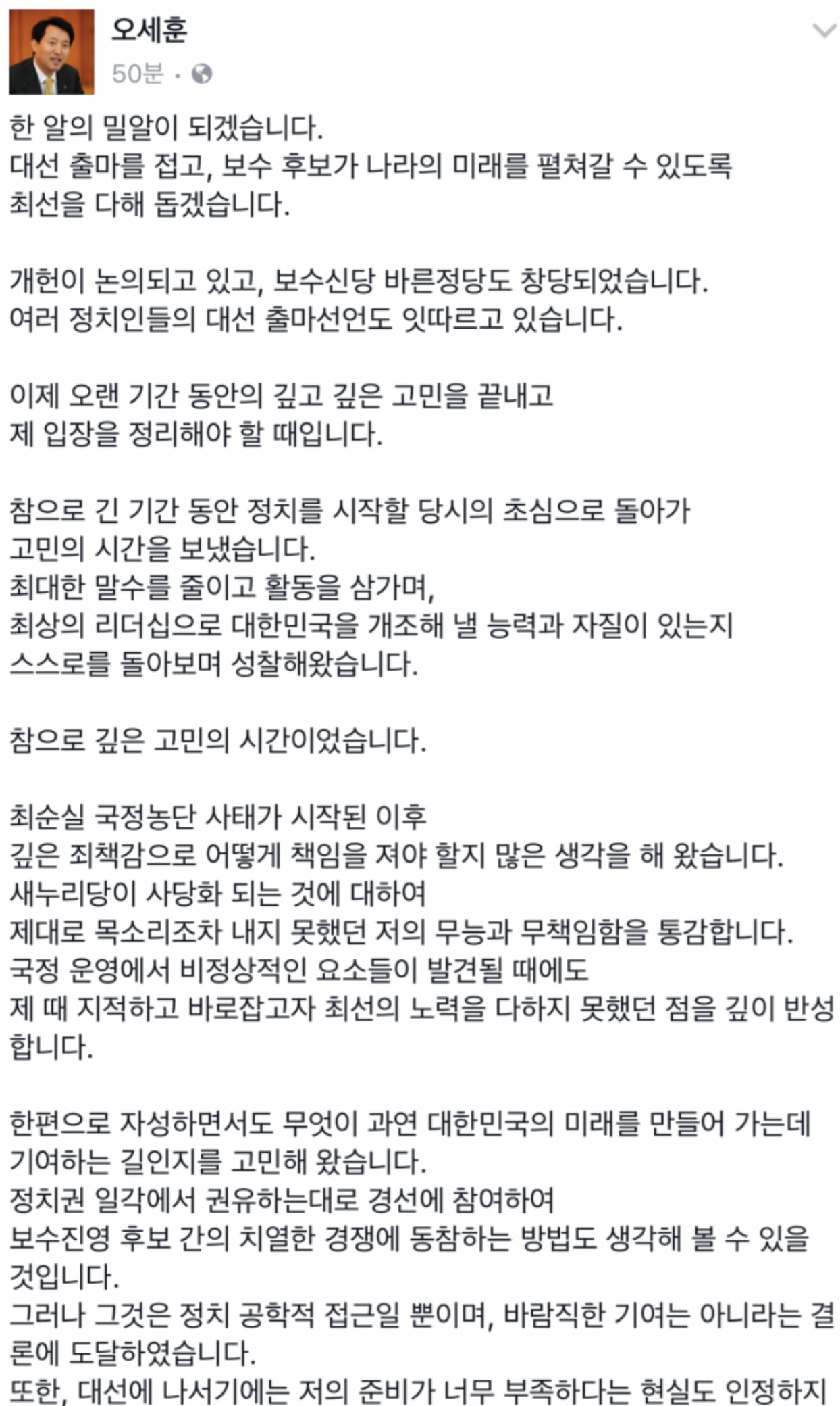 오세훈 대선불출마 선언