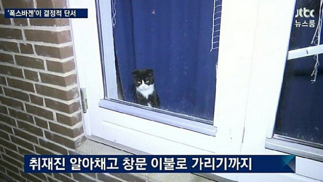 정유라가 집에 없는척 은신하고 있었는데 고양이 때문에 걸렸다고. ㅋㅋㅋ