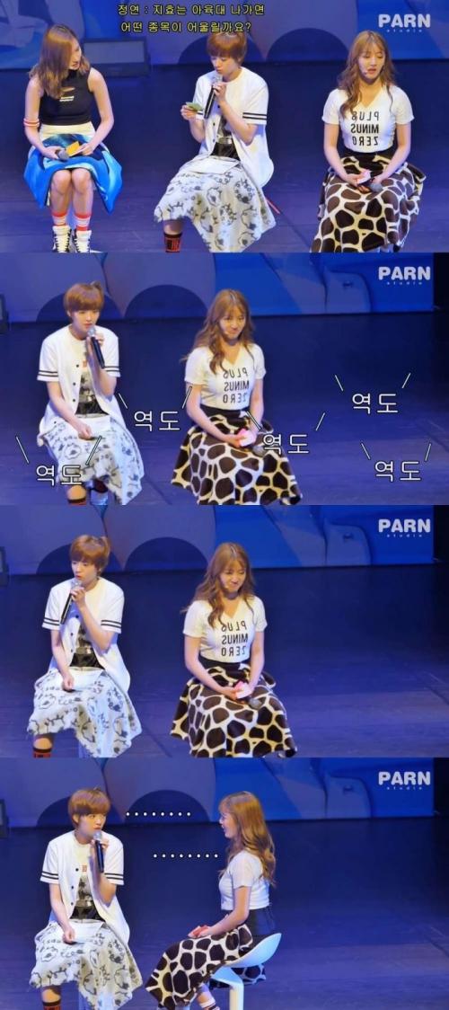 관객석에서 쯔위가 인사할려니까 입다물라고 했다네요