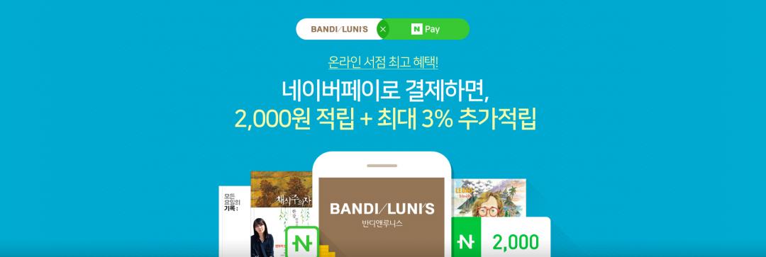 현재 반디앤루니스에서 네이버페이 첫결제시 네이버페이 포인트 2천원 준다고 하네요