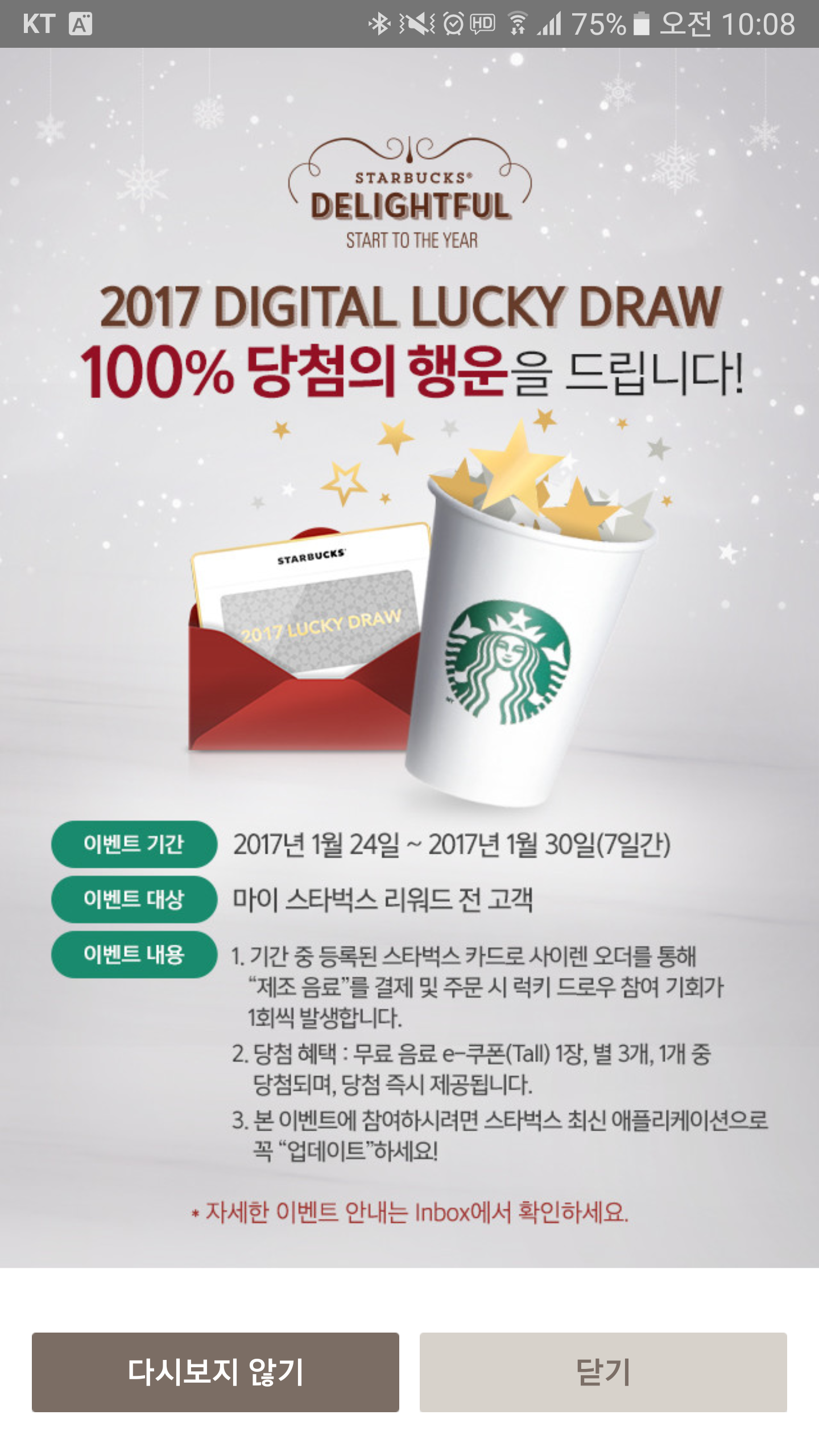 안돼요. '스타벅스 카드로' 결제 및 주문시 |